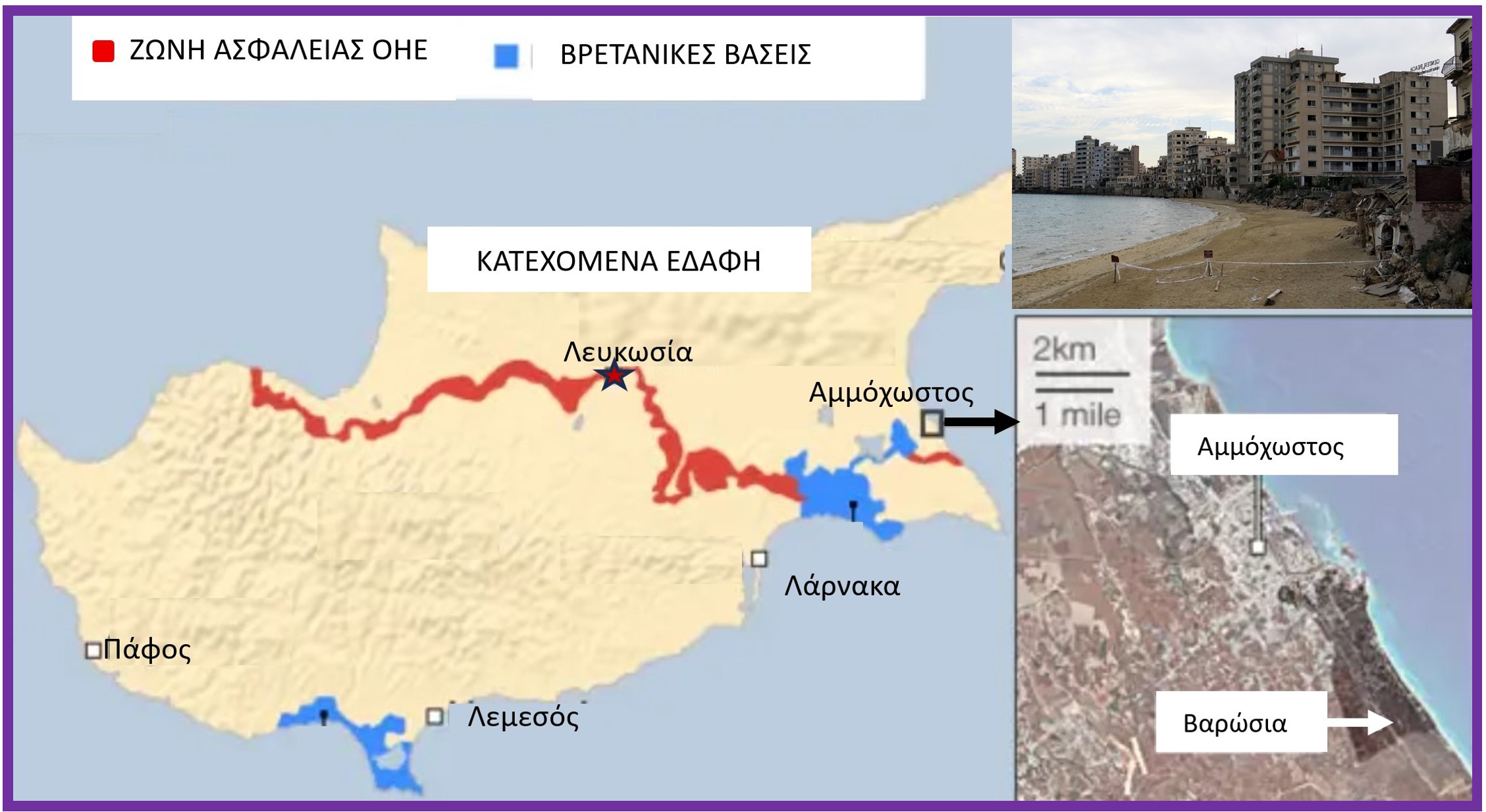 [14] Τα Βαρώσια είναι πόλη φάντασμα στο νότιο τμήμα της Αμμοχώστου. Πριν την τουρκική εισβολή ήταν δημοφιλές τουριστικό θέρετρο. Οι κάτοικοι της την εγκατέλειψαν κατά την εισβολή και έκτοτε παραμένει εγκαταλελειμμένη υπό τουρκική κατοχή.